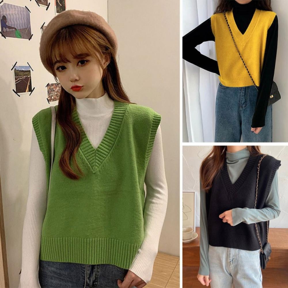 Women S V Neck Sweater Vest Uniform Cable Knit Sleeveless Sweater Version Of The Small Fragrant Wild Loose Hedging Sweaters Vest Walmart Com